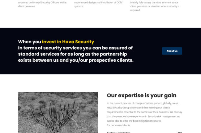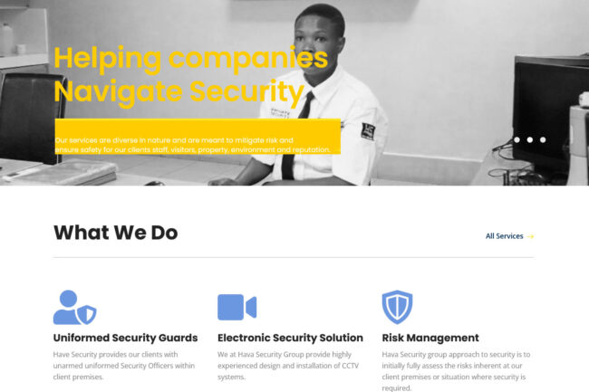 Hava Security Group, a security service provider, project involved web development and brand identity.